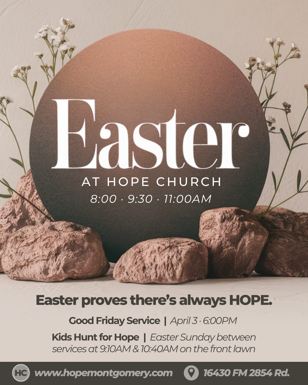 Sunday April 5 · 8:00am · 9:30am · 11:00am